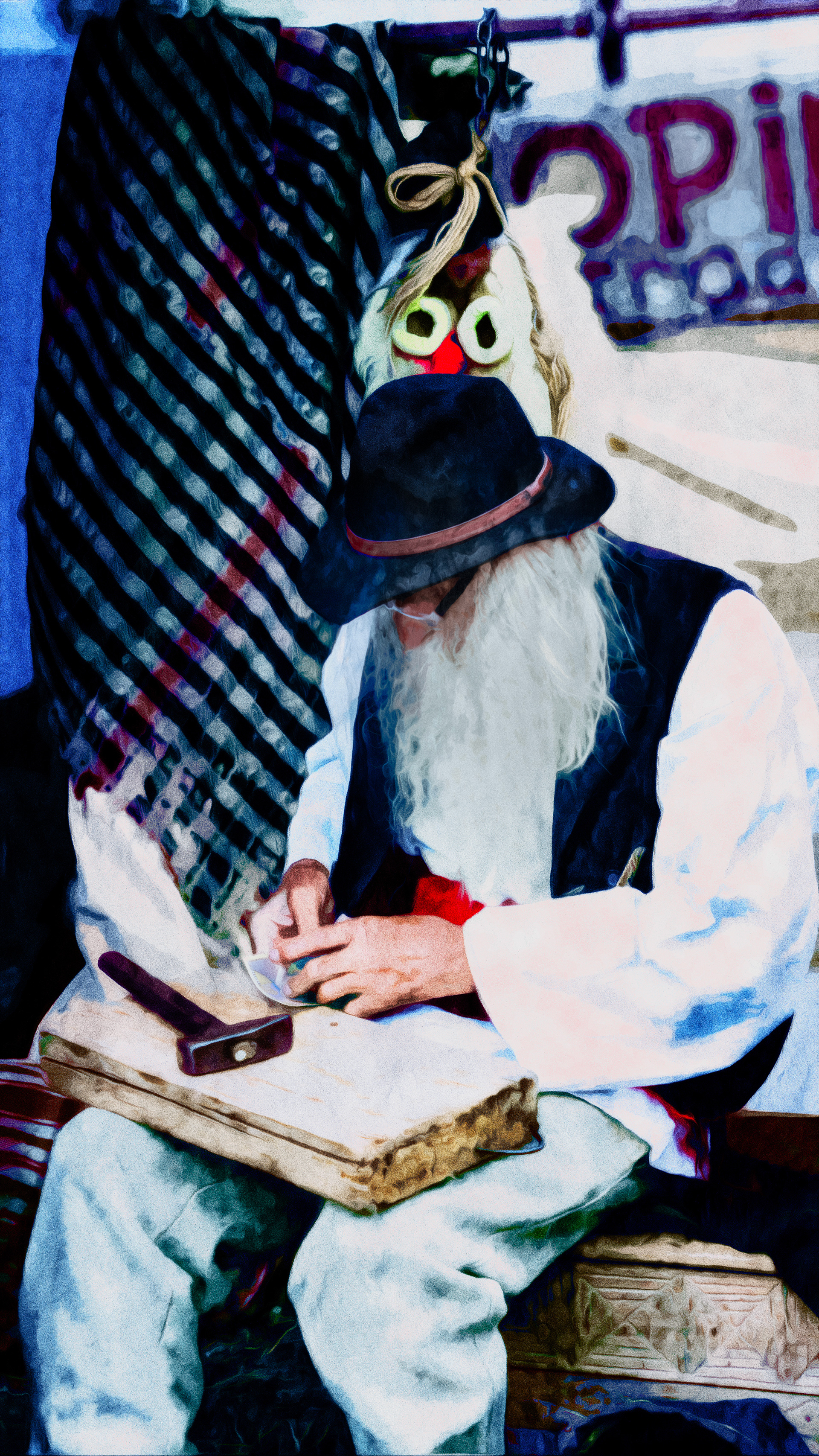 I experimented using only Photoshop old, classic Filters and Brushes so, no AI.